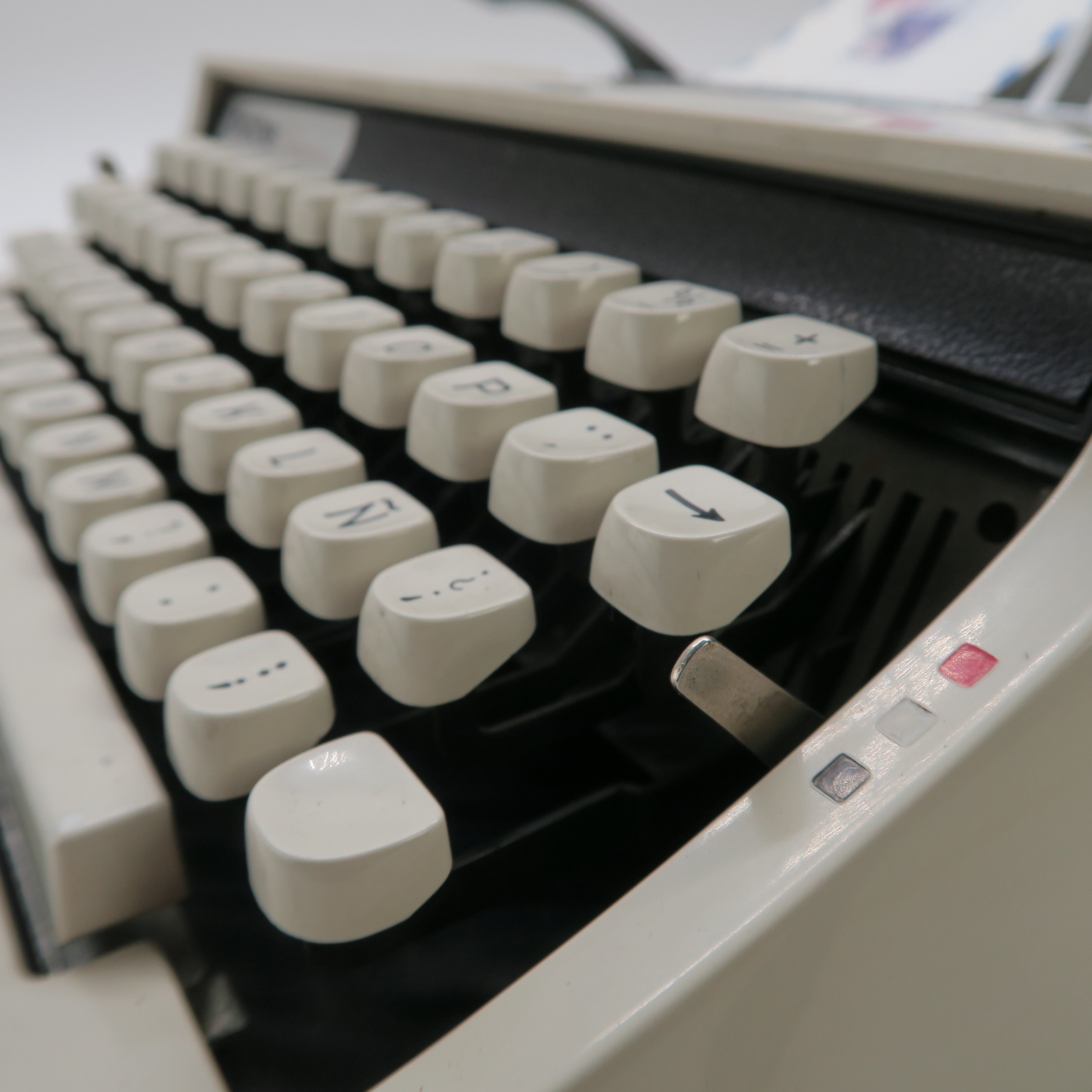Unico detalle, pequeña palanca de selector de interlineado (izquierda del rodillo) rota en la punta, pero se puede seleccionar interlineado.
