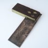 Hoja de hierro de 7″ (17,7 cm) de largo y de 2″ 1/8 de ancho, mango de madera noble con canto al borde de bronce. 3 Remaches de rombos de bronce en mango.