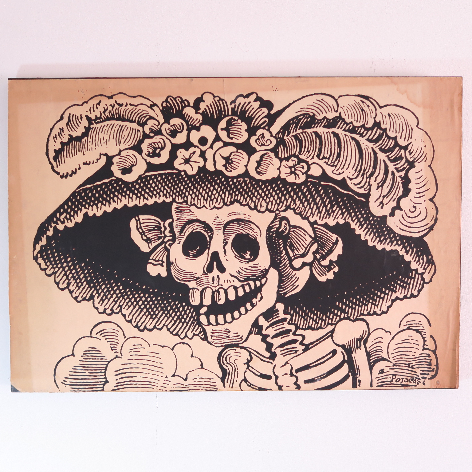Lámina Calavera Mexicana copia en serigrafía (?) de la Catrina de de José Guadalupe Posada (1852–1913), gran precursor del grabado mexicano.