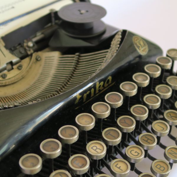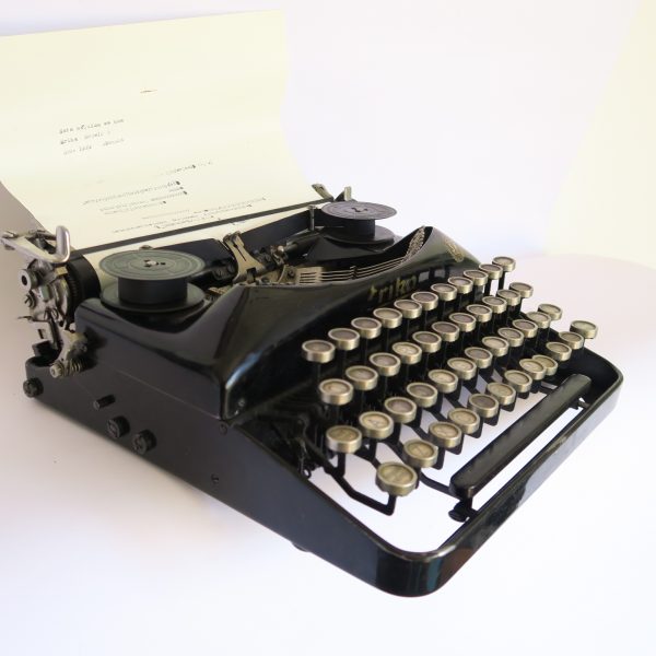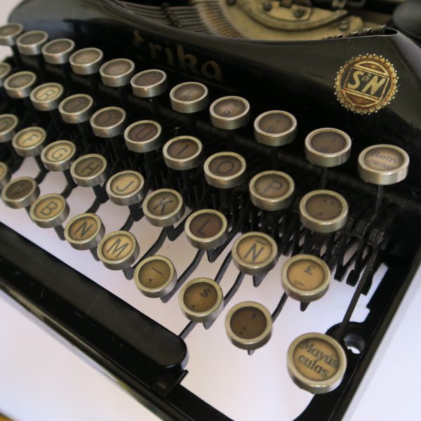 Máquinas de escribirMáquina de escribir portátil funcionando. Hecha en Dresden, Alemania año 1929.