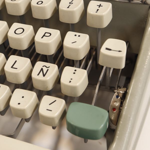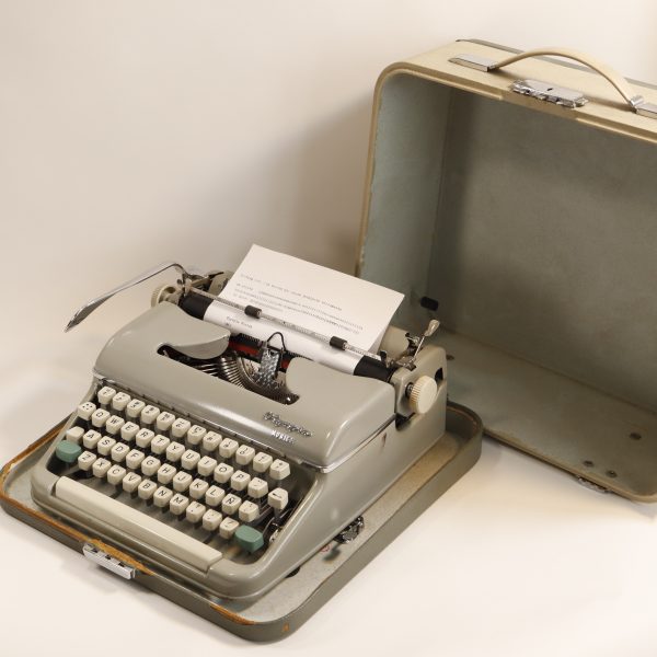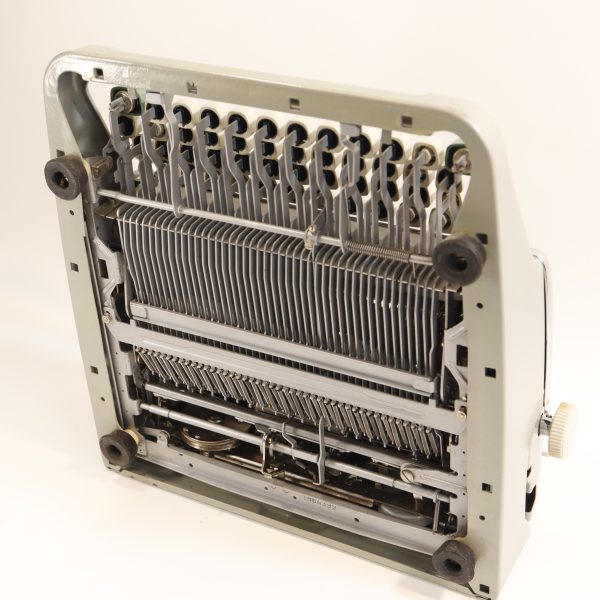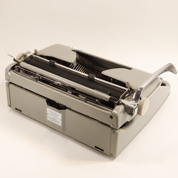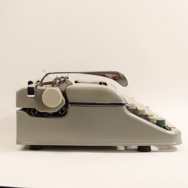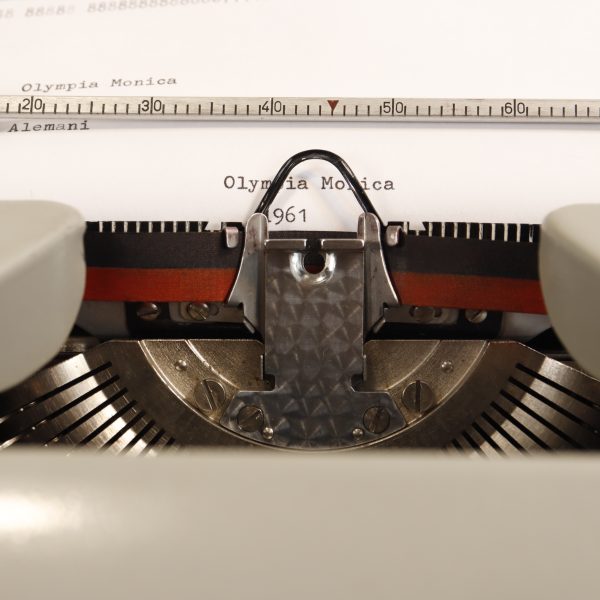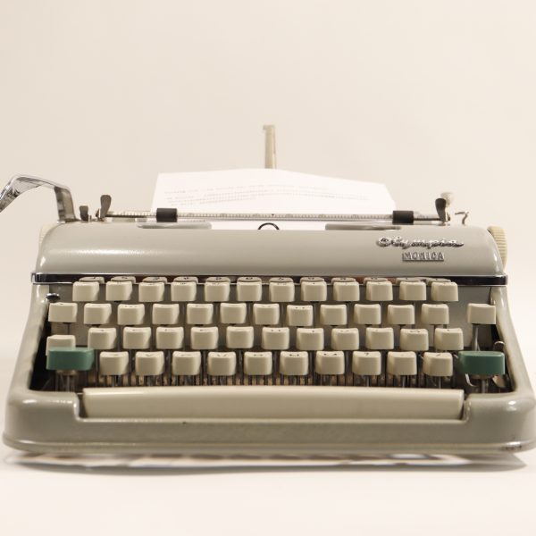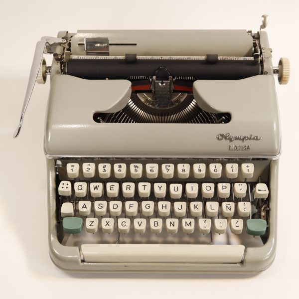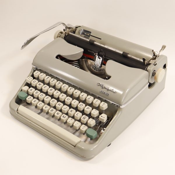 En los años 50-60, Olympia consolidó su reputación como el “Mercedes-Benz de las máquinas de escribir” gracias a la serie SM (Schreibmaschine Mittelgroß: máquina mediana). Este modelo “monica” es la versión simplificada de las SM, la cual no incluye tabulador, su soporte de papel no es plegable y no tiene regulador de tensión del teclado, funciones que si tiene la SM3 por ejemplo. Pero no pierde la calidad, robustez industrial, precisión mecánica y un tacto de escritura legendario que muchos consideran uno de los mejores jamás fabricados. Lanzada en una época de reconstrucción europea y auge literario, esta marca fue preferida de escritores, periodistas y oficinas que buscaban fiabilidad sin concesiones. Su diseño segment-shift (levanta el carro para mayúsculas) y construcción todo-metal la hicieron duradera para uso diario intensivo, y sigue siendo una de las portátiles más valoradas por coleccionistas y escritores analógicos hoy en día.