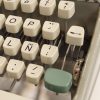 - Teclas de baquelita sólida color blanco (bakelite) con inserto negro legible, teclas de mayúscula color verde. Hechas con material premium de la época, resistente al desgaste, no se amarillea ni agrieta como plásticos posteriores; tacto fresco y preciso.