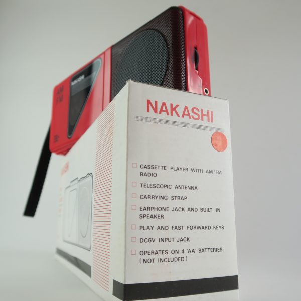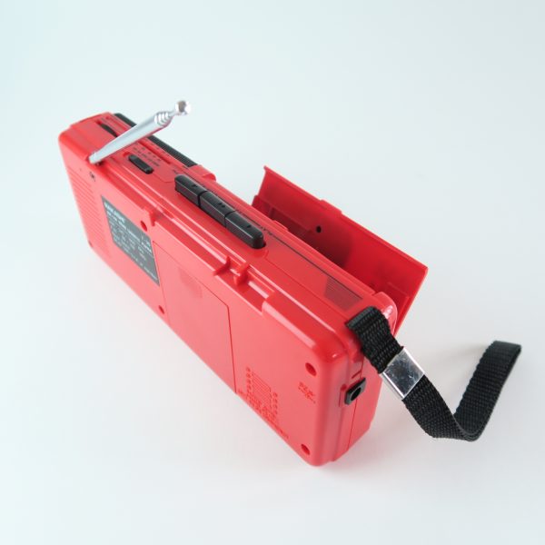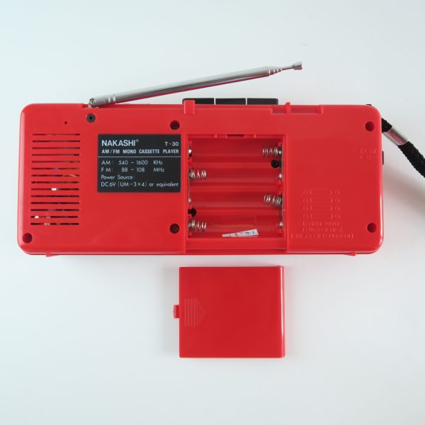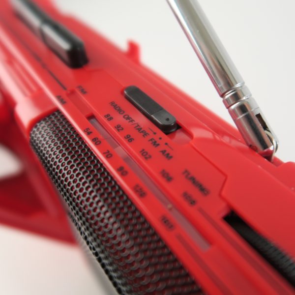 Reproduce cassette, radio AM/FM, con parlante incluido y antena telescópica.
