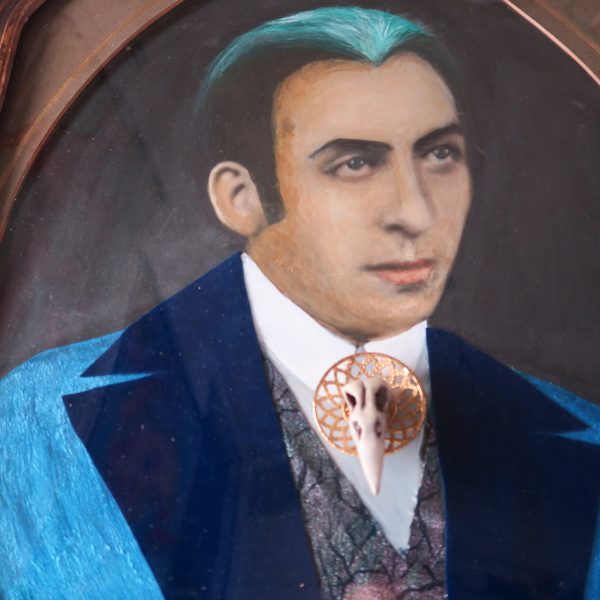 Pintura y tela sobre foto encontrada en un anticuario en Argentina.