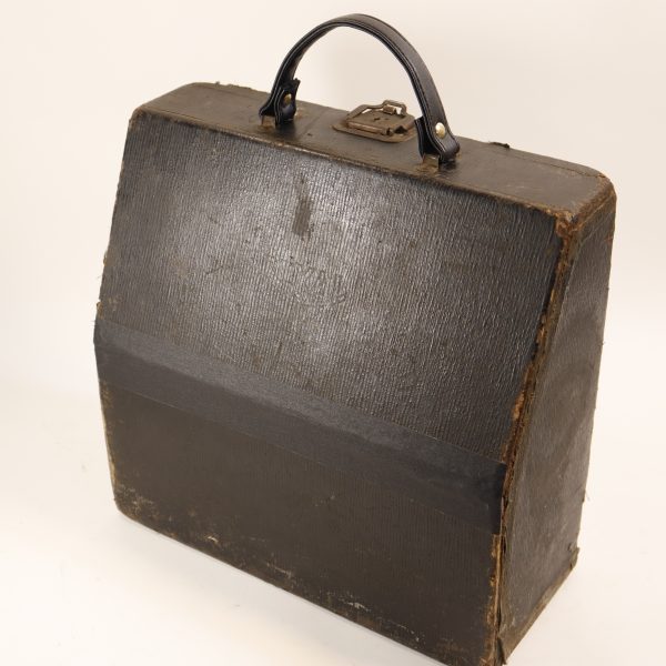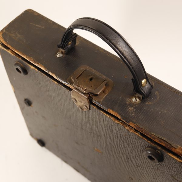 - Portátil ligera, alrededor de 5-6 kg con maleta de madera original, manilla reparada por nosotros.