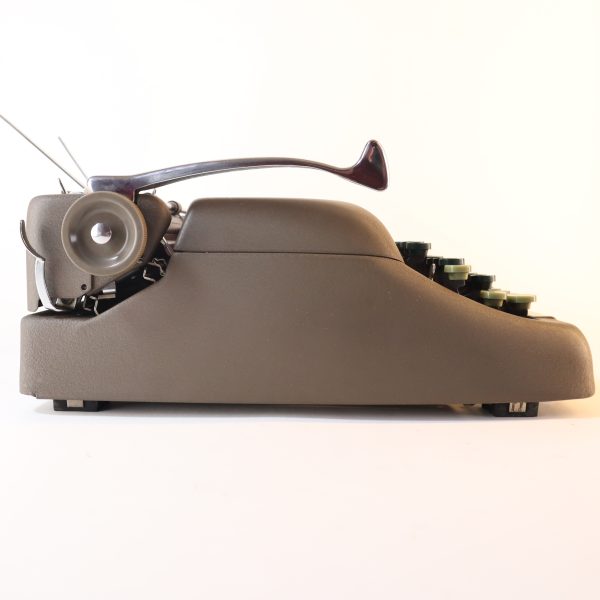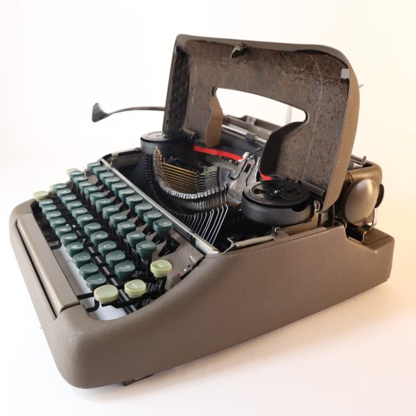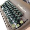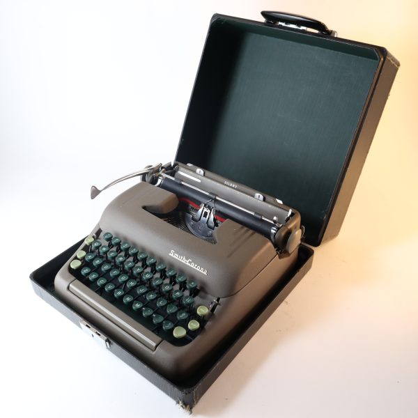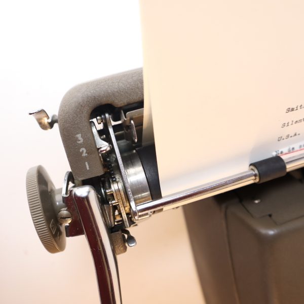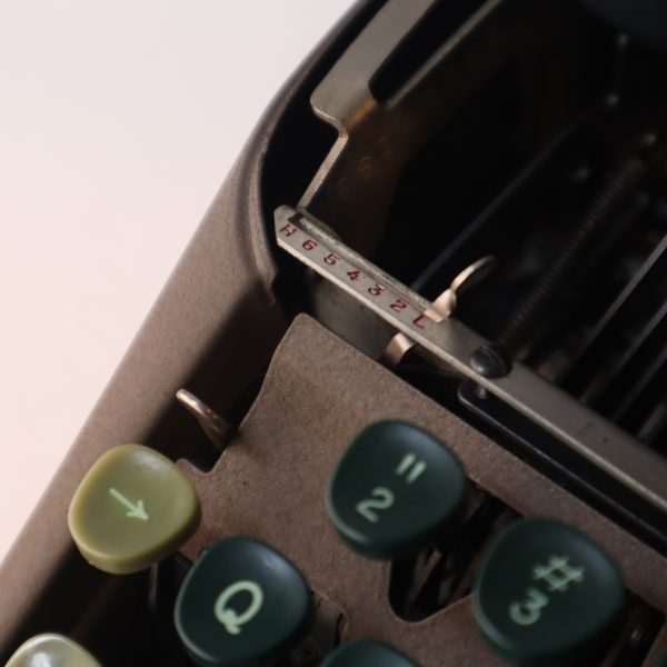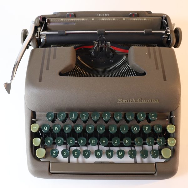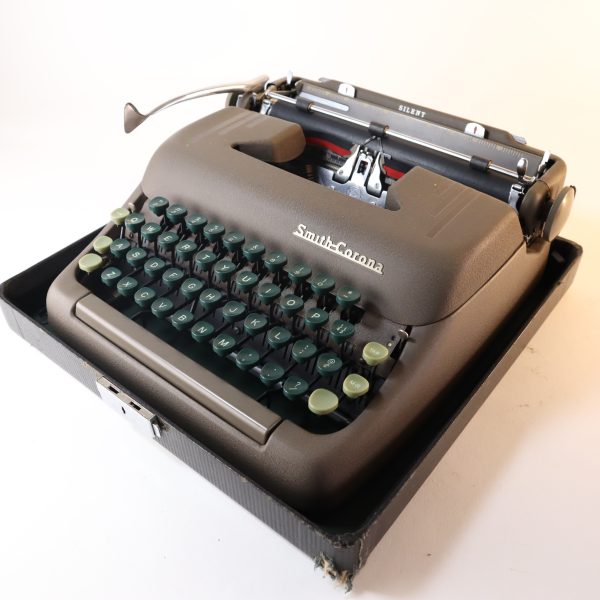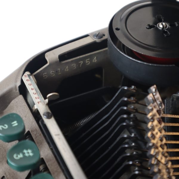 En excelente condicion. Perfecta para largas escrituras, estructura sólida y estable. Teclas plásticas verdes oscuras muy cómodas, teclas de funciones en verde claro y barra espaciadora en color café. Sin sistema de tabulación. Una elegancia de las máquinas de escribir, pertenece a la línea “Floating Shift” de Smith Corona, las “rápidas”, porque las mayúsculas se hacen bajando el carro, funcionando de manera muy ligera y fluida. Su barra de presión al papel tiene tres pequeños rodillos. Tiene la función de selección de color de cinta, a la derecha del teclado, siendo el azul para la parte superior y el rojo para la inferior de la cinta, el blanco no levanta la cinta (para corrector y stencil).