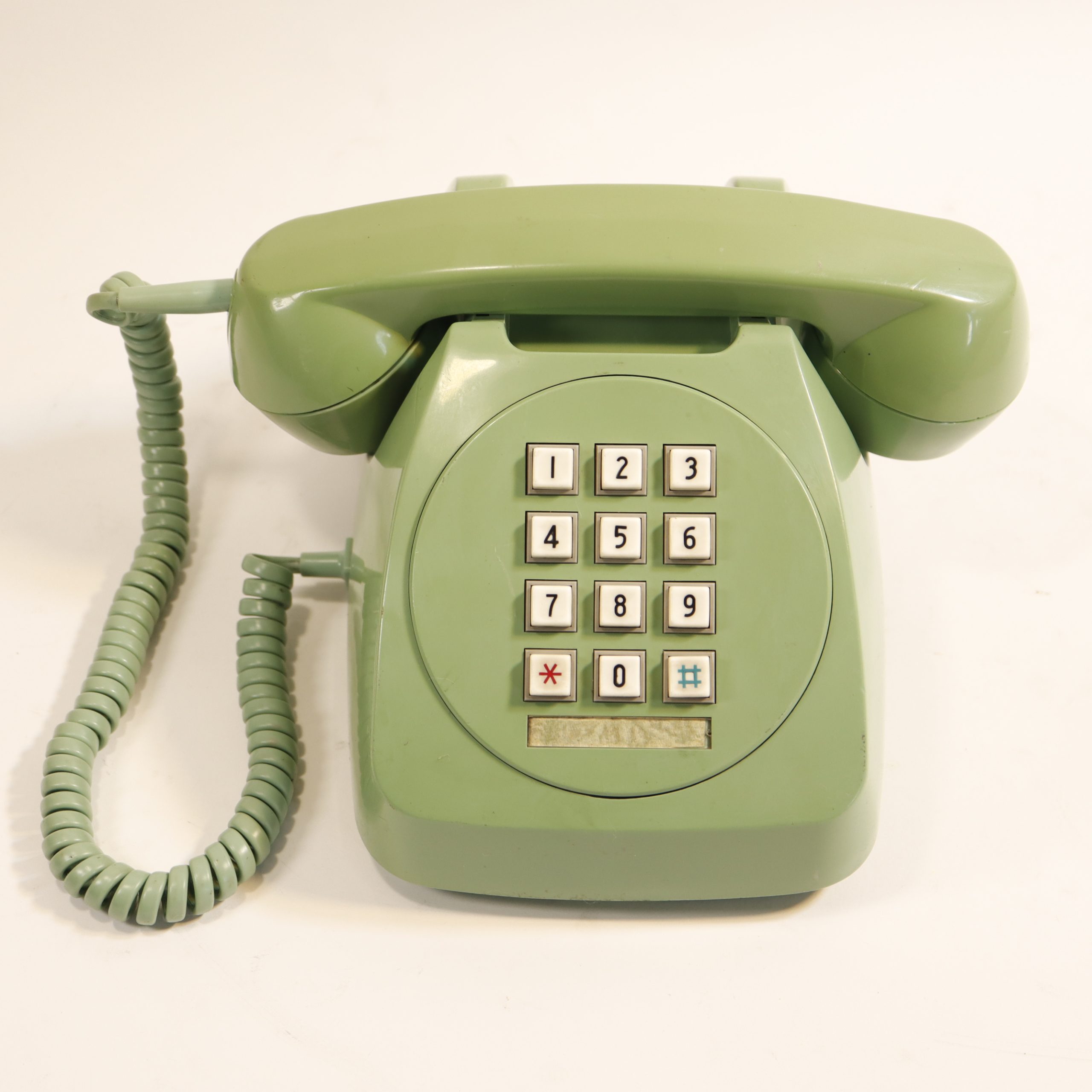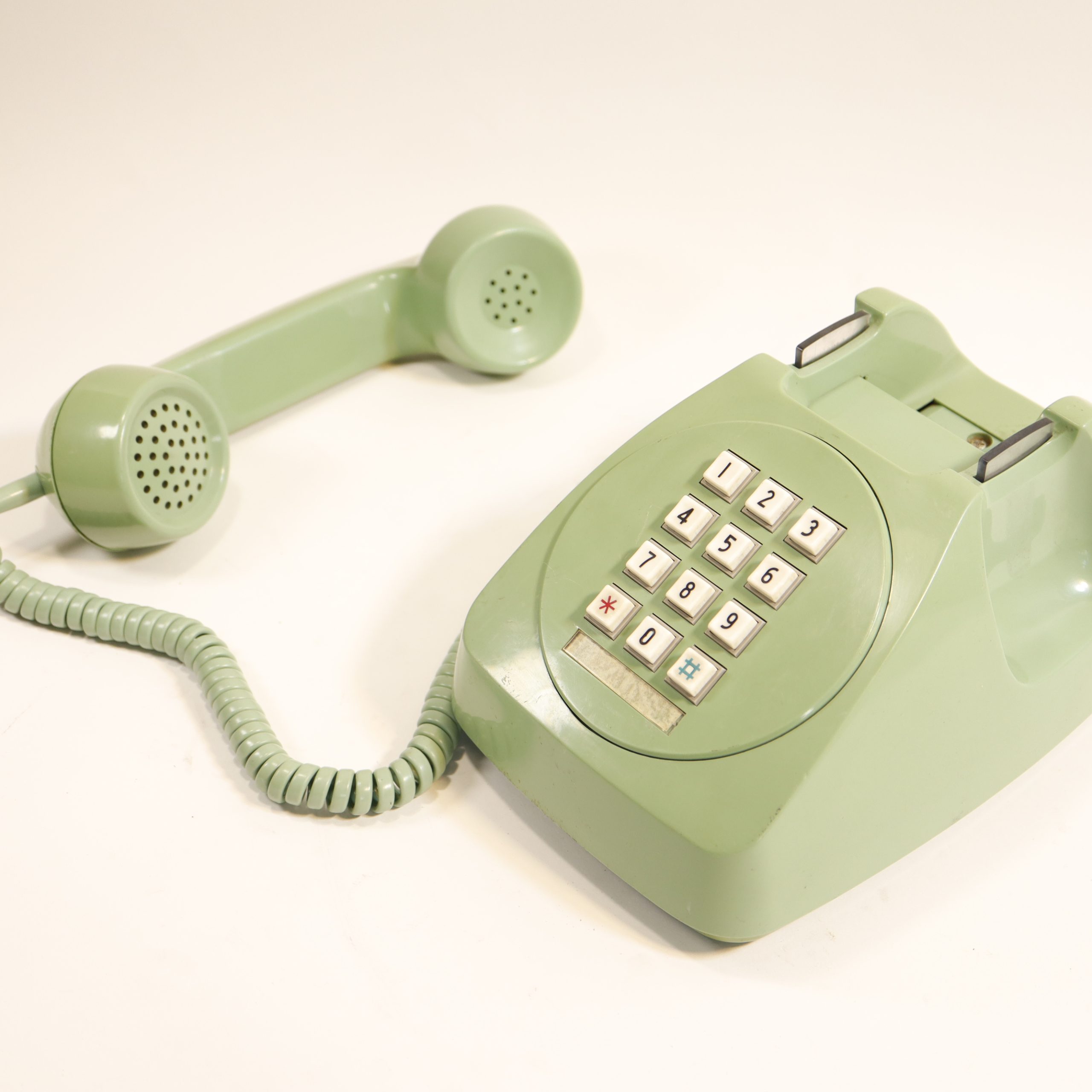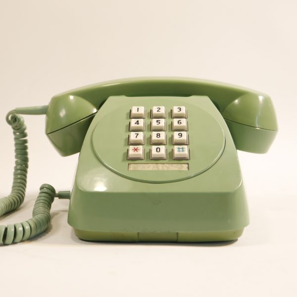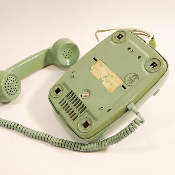 Este teléfono fijo de sobremesa, marca CTC, corresponde a la generación de teléfonos de cuarta generación de Chile, producidos en la década de 1980 y principios de 1990. Su carcasa en verde menta o verde claro, combinada con un teclado de teclas blancas, lo convierte en un objeto claramente identificable de la telefonía doméstica de esa época.