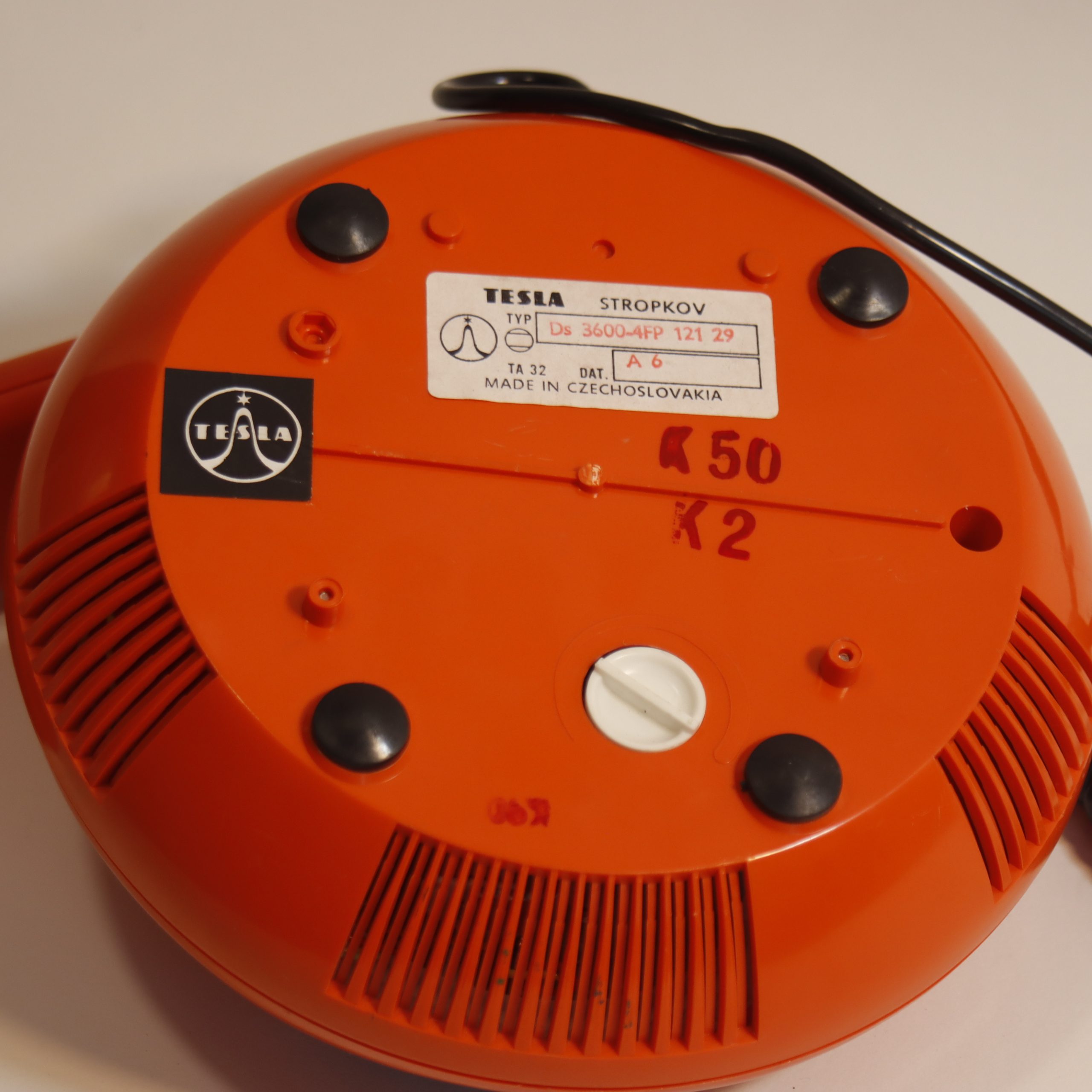 Tesla fue la principal empresa estatal de electrónica y telecomunicaciones de Checoslovaquia durante la segunda mitad del siglo XX, y su marca llegó a estar presente en casi todos los hogares del país. Esta pieza es un ejemplo de ese diseño industrial de finales de la era socialista: robusto, geométrico y sin adornos, priorizando la funcionalidad y el ahorro de materiales.