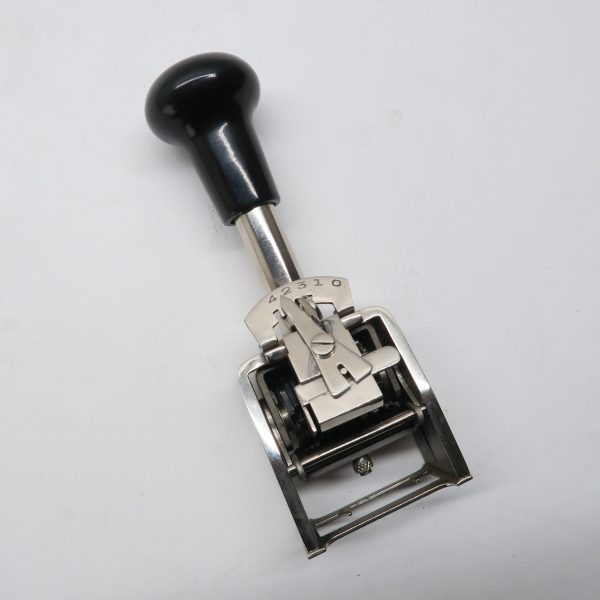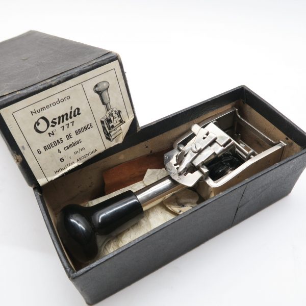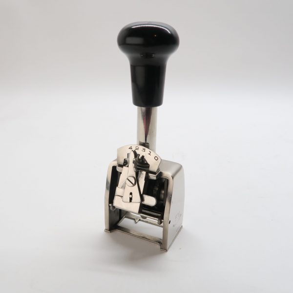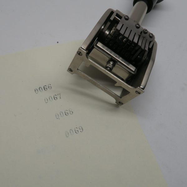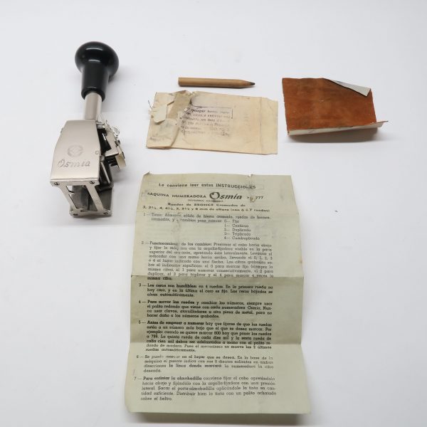 Los números grabados significan: el 0 para marcar fijo (siempre la misa cifra), el 1 para numerar consecutivamente, el 2 para duplicar la misma cifra, el 3 para triplicar y el 4 para marcar cuatro veces la misma cifra. Para fijar cifra inicial, se empuja el pomo, se bloquea con un botón de argolla en eje, y se mueven las ruedas con un palito de madera, incluido, para no dañar los sellos metálicos.