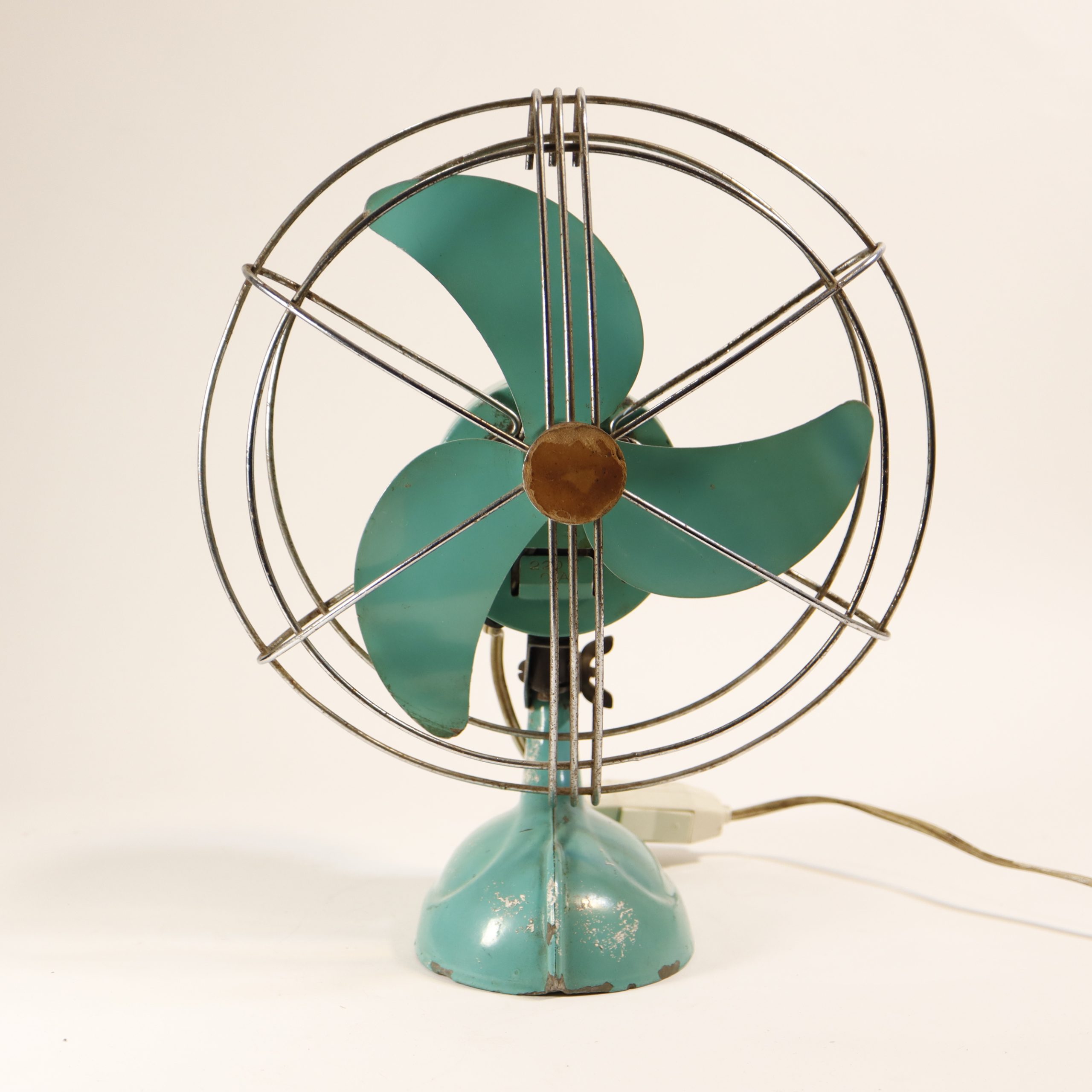 Funcionando, con interruptor. Tiene bastante fuerza, base sólida y con buen peso. Y tener cuidado con niños, ya que la rejilla es grande.